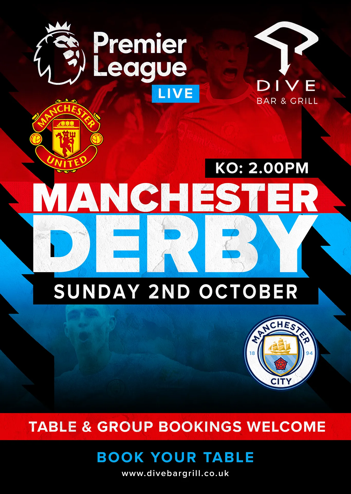 Manchester Derby – A3 Poster – 297mm x 420mm with 3mm bleed – Print